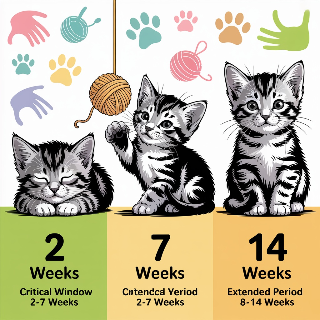 Begin cat socialization during the critical window of 2-7 weeks of age for optimal results. This sensitive period offers the greatest neurological receptivity to new experiences and social bonding.