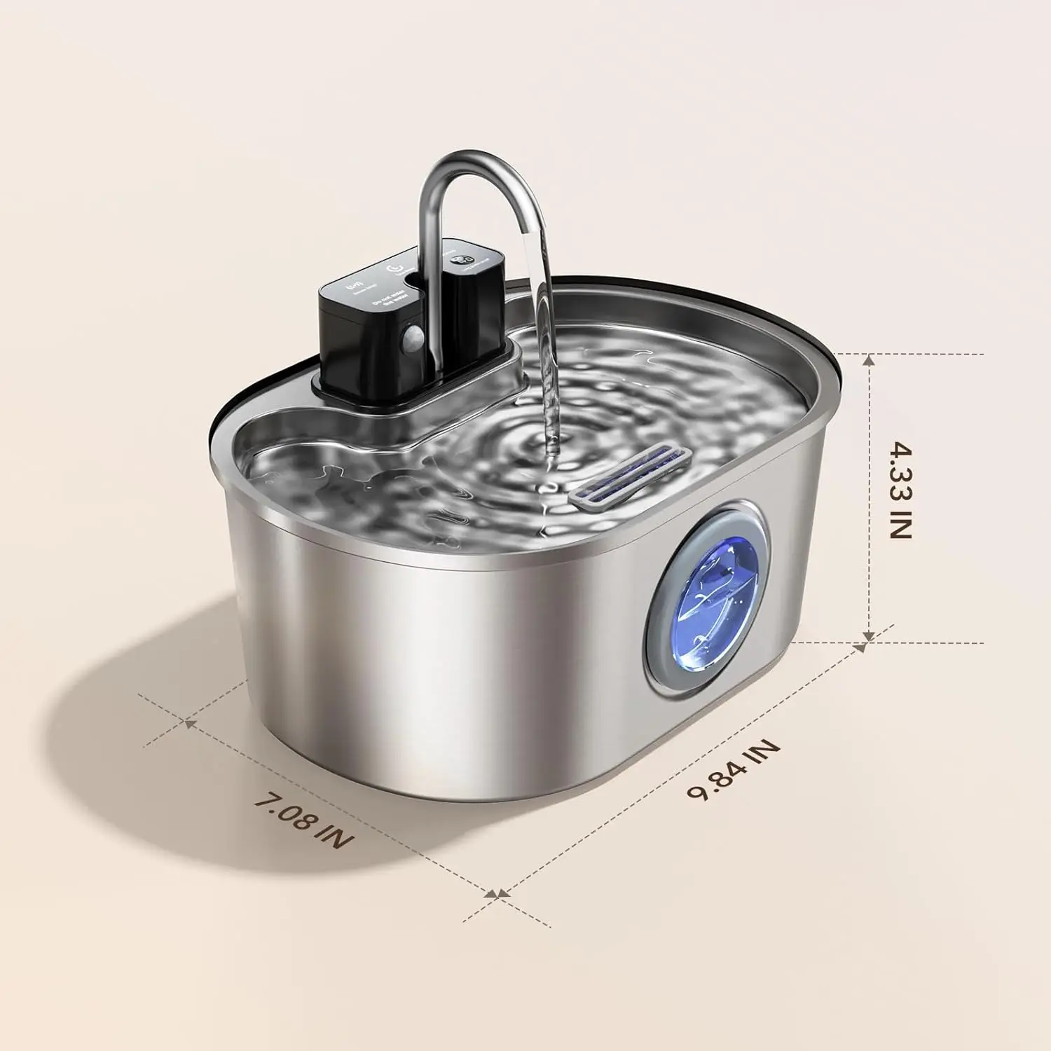 108oz/3.2L Stainless Steel Wireless Cat and Dog Drinker Rechargeable Automatic