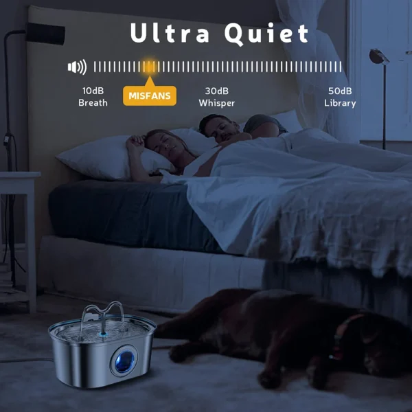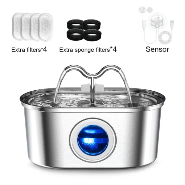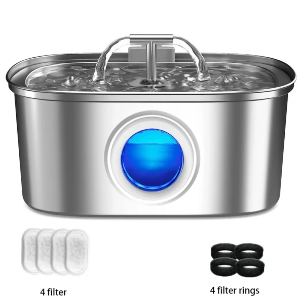 3.2L stainless steel pet water dispenser - a quiet filter pump powered by USB, smart drinking fountain for cats and dogs3.2L stainless steel pet water dispenser – a quiet filter pump powered by USB, smart drinking fountain for cats and dogs